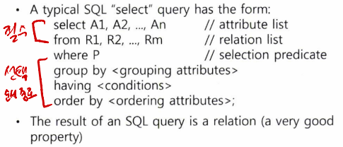 - 결국 SQL 문장의 의미는 멀티셋을 대상으로 하는 관계연산의 결과를 의미
