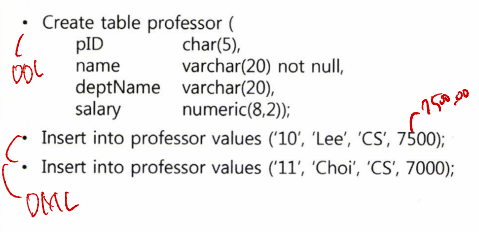 - DML(data manipulation language) - 데이터(인스턴스) 관련 언어