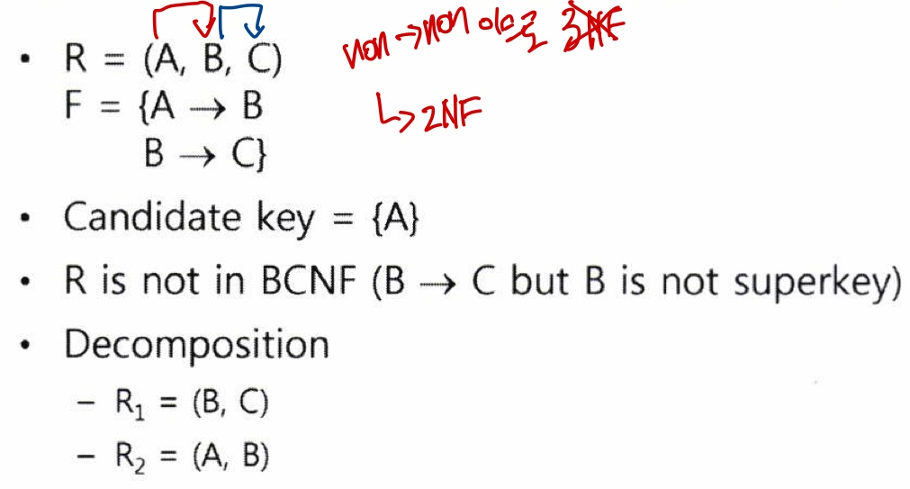 - ※ 하지만 3NF로의 무손실 조인 분해는 항상 함수 종속성을 보존할 수 있음