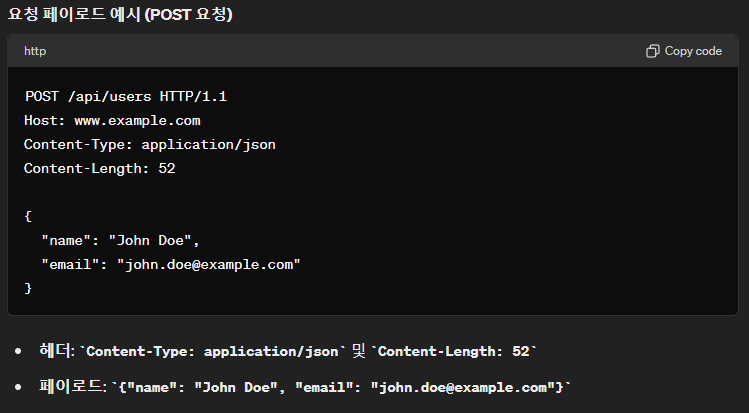- 서버가 응답(Response)을 보낼 때에는 항상 Payload를 보낼 수 있음