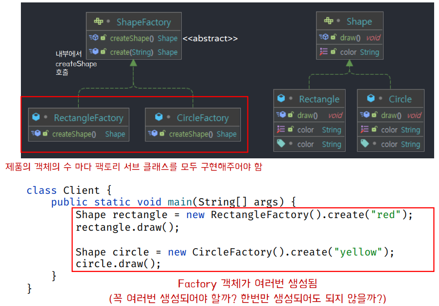 - 여러 팩토리 객체가 생성되어 자원이 낭비될 수 있음