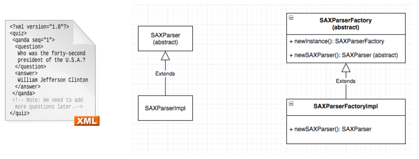 - 여러 가지 파싱 방법을 제공하기 위해 팩토리 메서드 패턴으로 구현됨