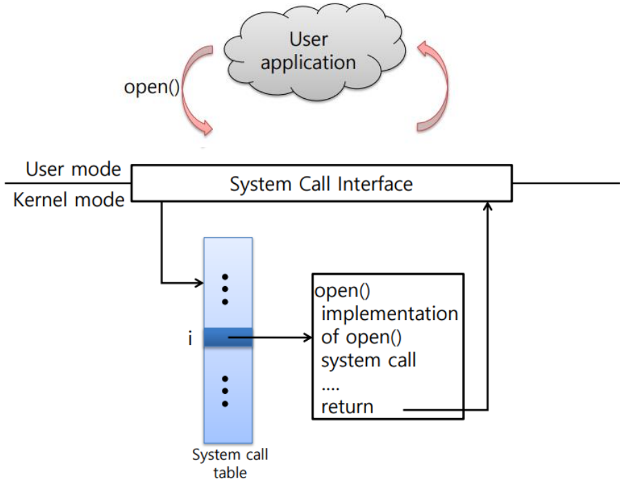 - 애플리케이션이 Kernel Mode의 권한이 필요한 서비스를 받기 위한 방법이 필요(system call)