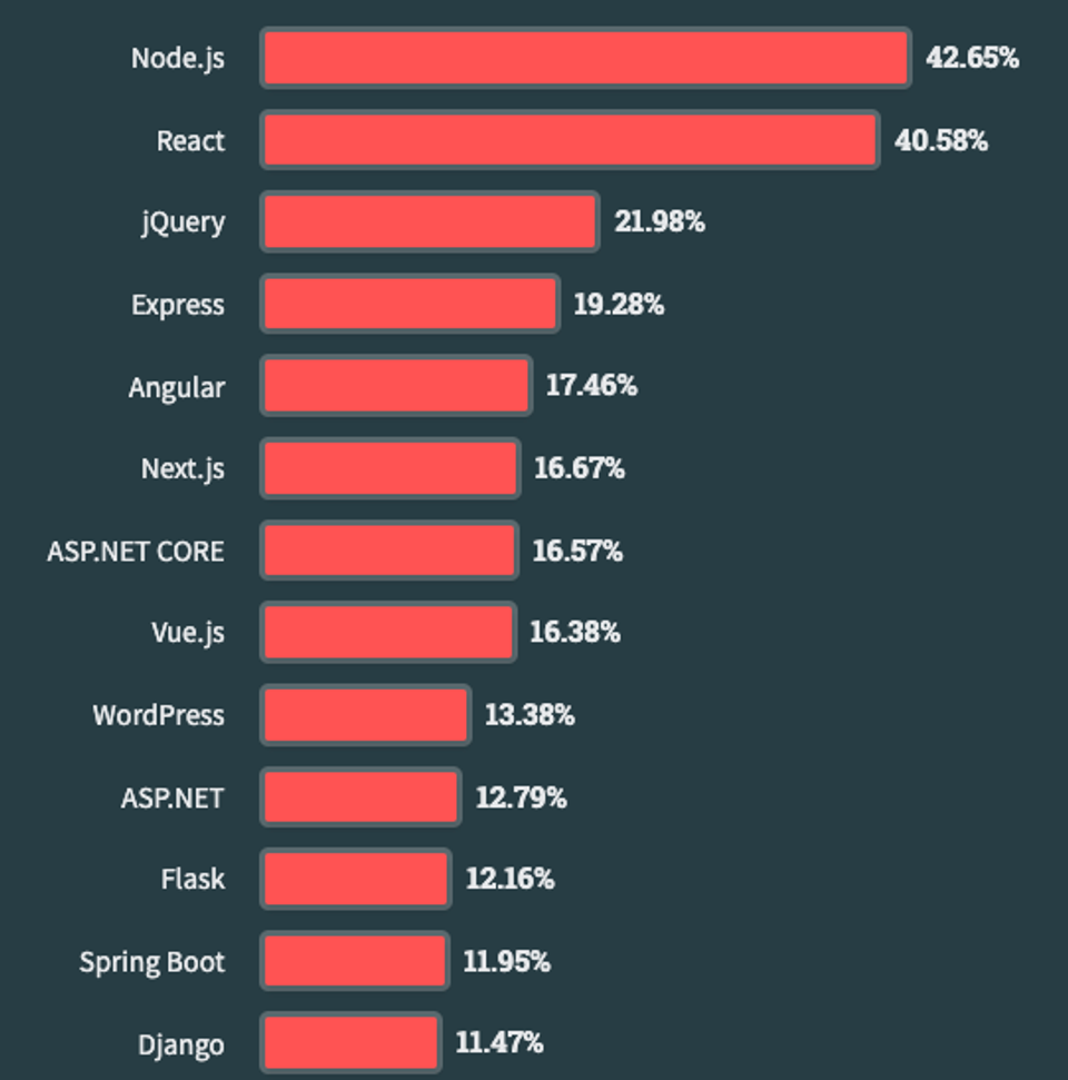 - 2023 스택오버플로우 설문에서 웹 프레임워크 기술 부문에서 1위를 차지할 정도로 대표적인 웹 프레임워크 기술