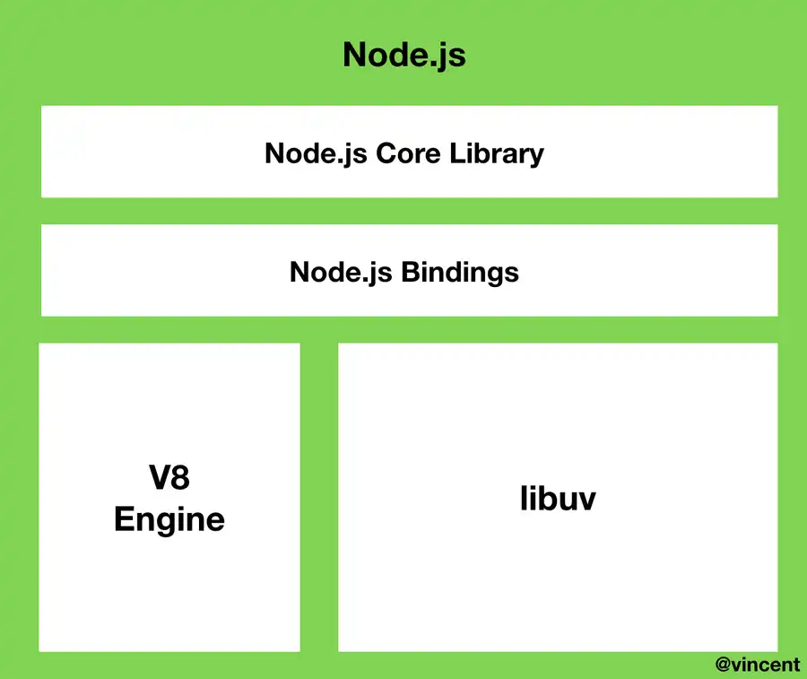 - libuv: Node.js가 비동기 I/O 작업을 수행할 수 있게 해주는 중요한 라이브러리. 이 덕분에 논 블로킹 I/O 모델이라는 특징과 여러 요청을 효율적으로 처리할 수 있게 됨
