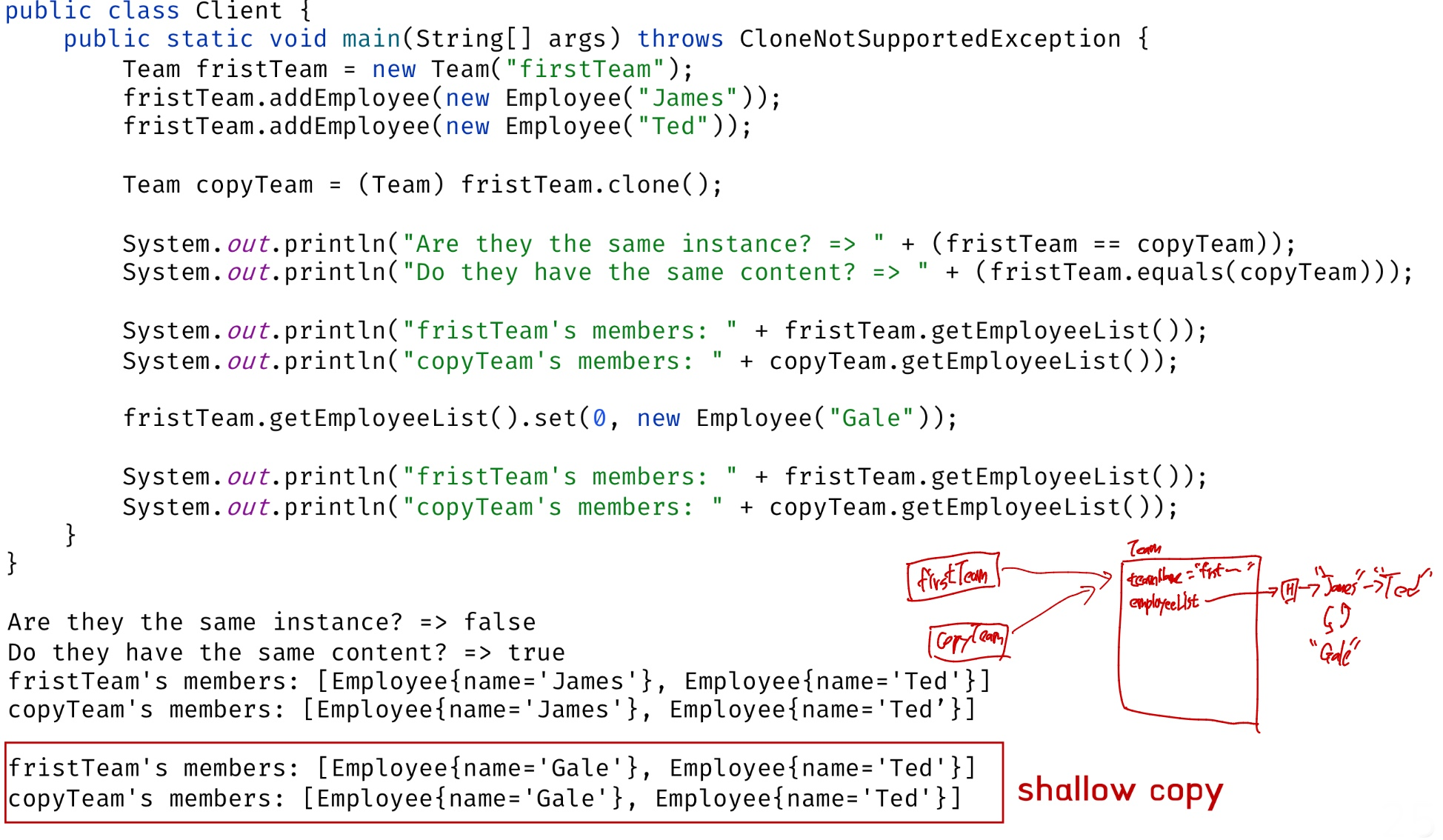 ex) Prototype pattern with shallow copy