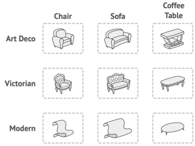 - 각 서브 팩토리에서는 스타일에 일관된 제품군이 생성될 수 있도록 생성 메서드를 구현합니다.