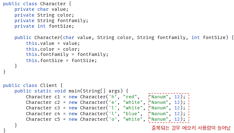 - ex) Edtitor 프로그램에서 character를 표현하는 객체