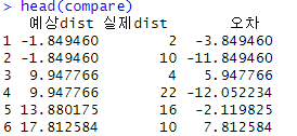 - 어떤 모델을 돌렸는지: cars 데이터로 단순선형회귀를 했다