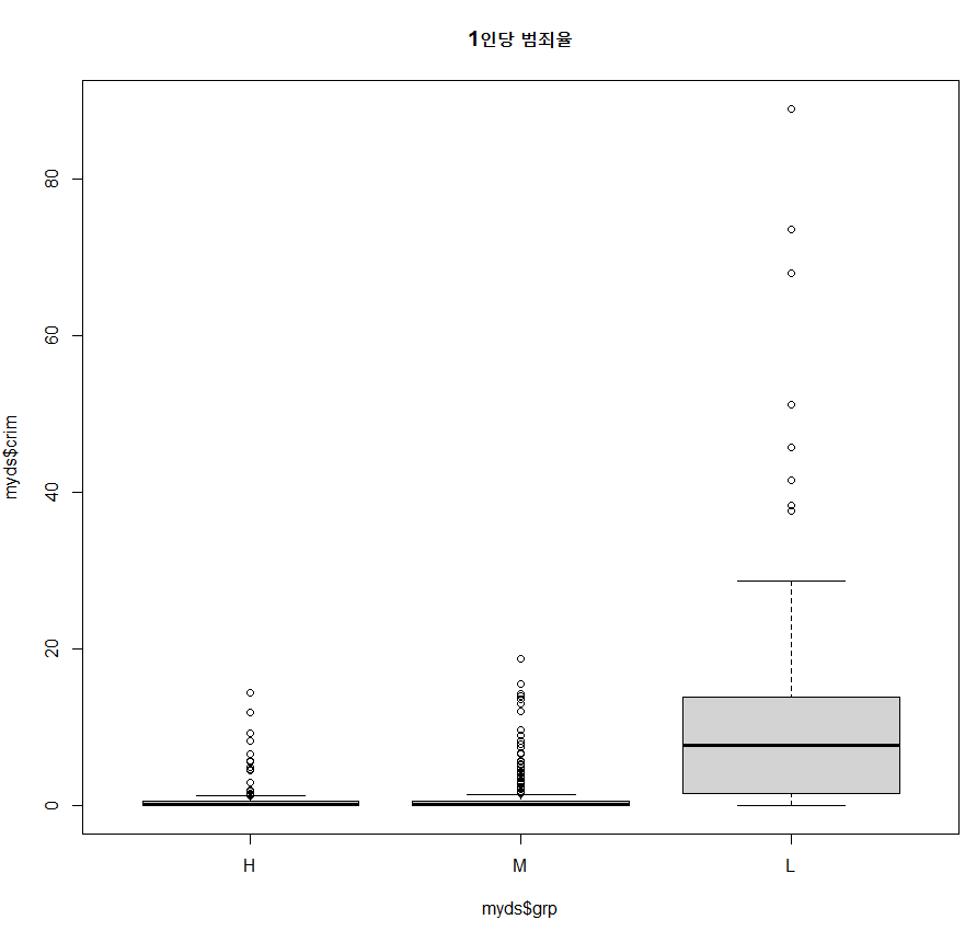 - 산점도상에서 음의 상관성이 높은 것으로 보였던 crim(1인당 범죄율)은 상관계수가 약 -0.388로 실제로는 상관도가 높지 않음