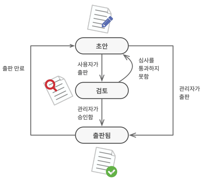 - Draft(초안): 문서를 Moderation(검토) 상태로 이동