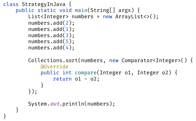 - Concrete Strategy(구체적 전략): 작성한 익명 자식 클래스