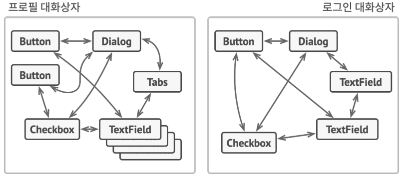 - 여러 객체들이 상호작용하는 복잡한 상황에서 각 객체가 서로를 참조하게 되어 한 클래스 수정 시 연관된 클래스들의 수정이 연쇄적으로 발생할 때 필요