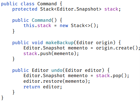 private Stack<Memento> history = new Stack<>();