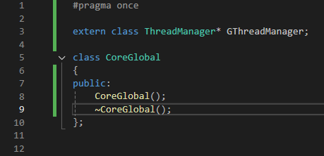 - CoreGlobal.cpp(정의부): 실제로 메모리 공간을 할당하고 전역 변수의 실체를 만듦