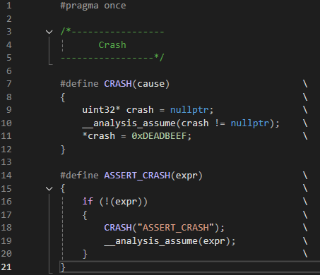 - 다음과 같이 에러 체크용 ASSERT나 디버깅을 위해 CRASH를 유도하는 매크로 등을 미리 만들어 둘 수 있음